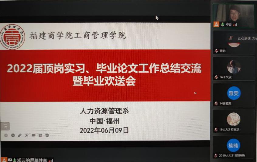 人力资源管理专业2022届顶岗实习、毕业论文工作总结交流暨线上毕业欢送会圆满举行