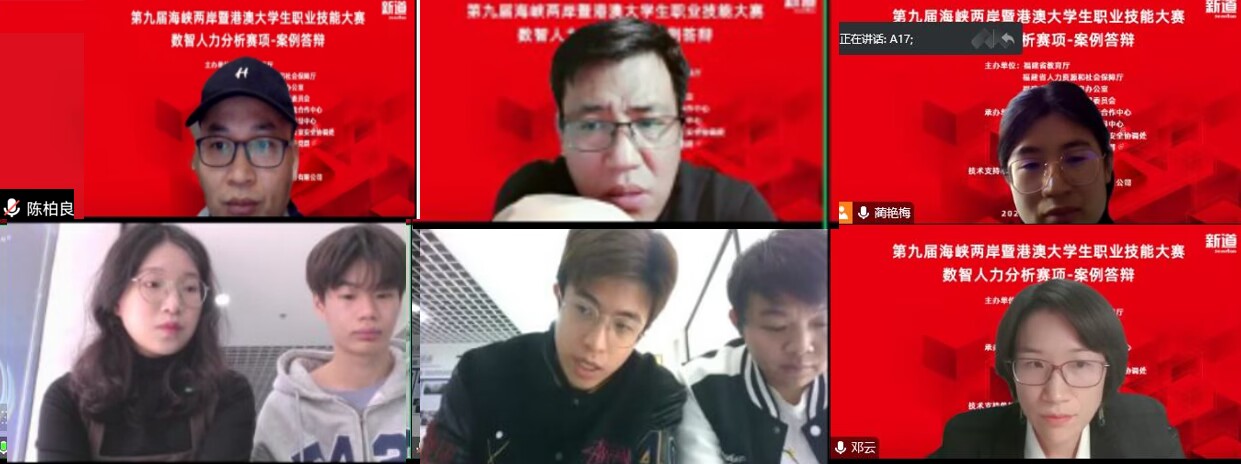 2022年11月5日,第九届海峡两岸暨港澳大学生职业技能大赛数智人力分析赛项通过腾讯会议进行线上案例答辩比赛。受疫情影响,我校必赢3003no1线路检测中心教师陈柏良、邓云通过腾讯会议线上接入担任数智人力分析赛项专家评委。
