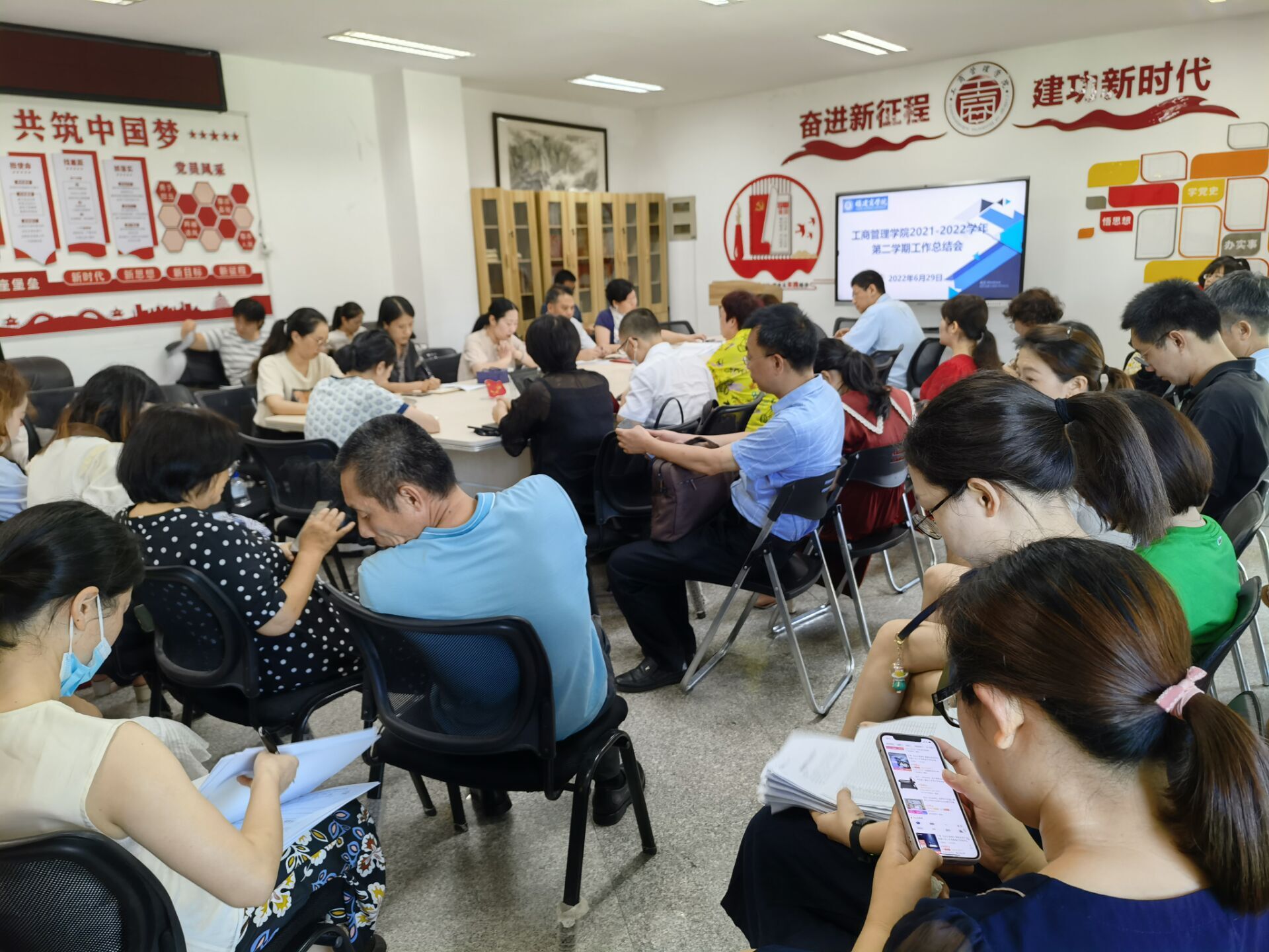 会议伊始,院党委副书记陈达颖进行学期工作总结,带领大家从党建、队伍建设、思想政治工作、师德师风建设、文化建设、疫情防控工作等工作主线回顾了过去这个学期所做的工作,包括学院在教育教学改革、科研、学生就业、产教融合等方面获得的成果。副院长纪孝清主要细数了学院在产业学院建设、实践基地拓展、实验室建设方面取得的成绩,并就暑假期间学位评估、本科教学合格评估等工作做了具体部署。严谨副院长主要就教学管理工作,特别是人培方案、专业群建设等方面的进展情况和存在的问题做了分析说明。