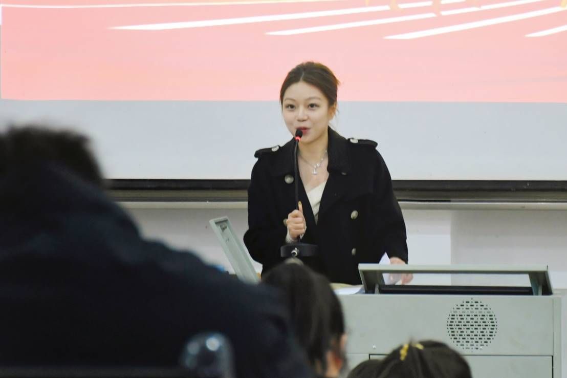 执行主席黄颖代表发言,她表示本次校运会中工管学子充分展现了顽强拼搏、团结进取、奋发向上的精神风貌,每一个突破自我的瞬间都能感受到体育运动的魅力所在。她鼓励同学们继续保持赛场上那种拼搏、不服输的精神,不断提升自己。