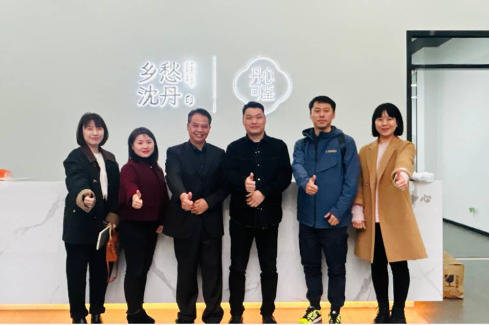 随后,一行人来到乡愁沈丹的运营公司,公司运营负责人方庆发先生带大家参观了极具乡土气息的直播间及展示着各种特色农产品和手工艺品的展柜,也介绍了沈丹的创业历程以及公司对乡村振兴的理解和助推作用。纪孝清副院长和教师们对沈丹的创业精神和执着追求表示赞赏,并就如何结合乡愁文化打造特色直播电商品牌、推动农产品上行等方面进行了深入的探讨和交流。