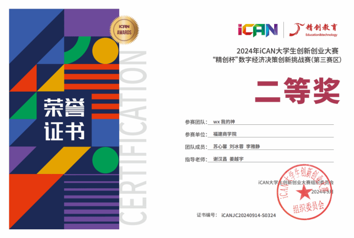近日,备受瞩目的2024年iCAN大学生创新创业大赛“精创杯”数字经济决策创新挑战赛圆满落幕。此次大赛由iCAN大学生创新创业大赛组织委员会主办,吸引了来自全国众多高等学府的精英团队参与。必赢3003no1线路检测中心必赢3003no1线路检测中心派出多支队伍参赛,经过激烈的角逐,最终取得了三个二等奖和一个三等奖的优异成绩。