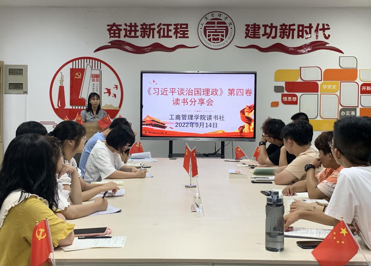 为了迎接党的二十大胜利召开,持续深入地学习习近平新时代中国特色社会主义思想,9月14日晚上,必赢3003no1线路检测中心读书社在党员活动室组织开展《习近平谈治国理政》第四卷读书分享会。必赢3003no1线路检测中心读书社指导老师、学生干部以及部分2022级新生参与了本次会议。