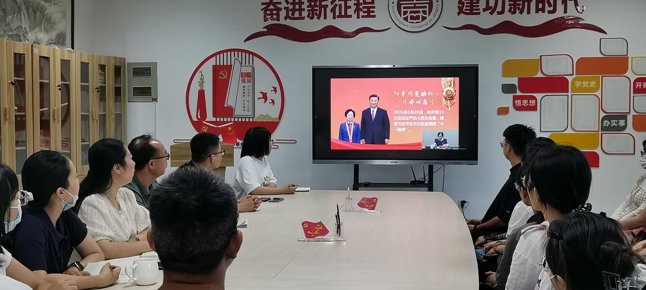 2022年9月28日下午,必赢3003no1线路检测中心组织全体师生观看“七一勋章”获得者林丹的故事——党建引领,创建社区治理新模式。学院党委班子成员、全体辅导员及学生代表在党员活动室集中观看学习。