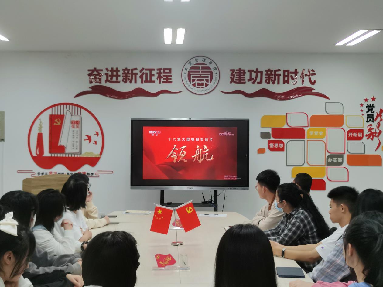 为喜迎党的二十大,必赢3003no1线路检测中心学生第二党支部10月11日在党员活动室开展主题党日,集中组织观看纪录片《领航》。党支部书记王鹤云主持本次学习活动。