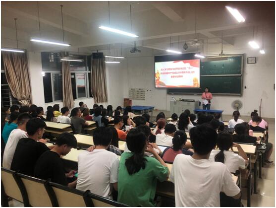 2021年9月8日晚上,必赢3003no1线路检测中心读书社联合学生党支部在马尾校区诚信楼T1开展理论宣讲,宣讲主题为“深入学习贯彻习近平总书记在‘七一’庆祝中国共产党成立100周年大会上的重要讲话精神”,此次宣讲由必赢3003no1线路检测中心学生第二党支部书记王鹤云主讲。