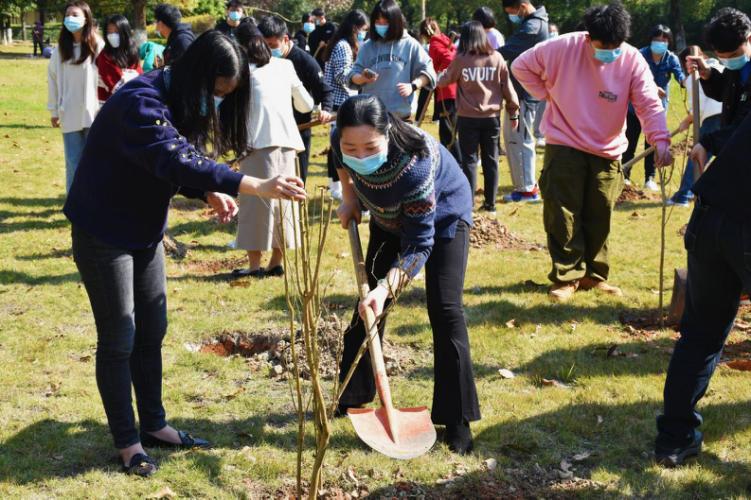 3月11日上午,后勤基建党支部在马尾校区开辟出一块空地,植树现场热火朝天。党员志愿者们充分发扬团结协作精神,经过挖坑培土、扶苗平整、挥锹压实、提水浇灌等环节,合力种下近50株“福商之树”。