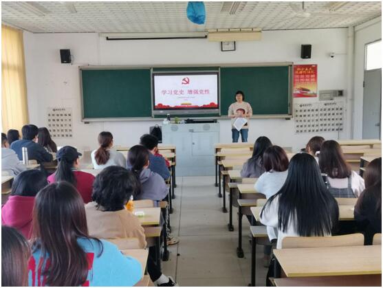 2021年3月19日下午,必赢3003no1线路检测中心学生第二党支部书记王鹤云在远志楼301给支部入党积极分子、发展对象、预备党员上《学习党史 增强党性》的党课。