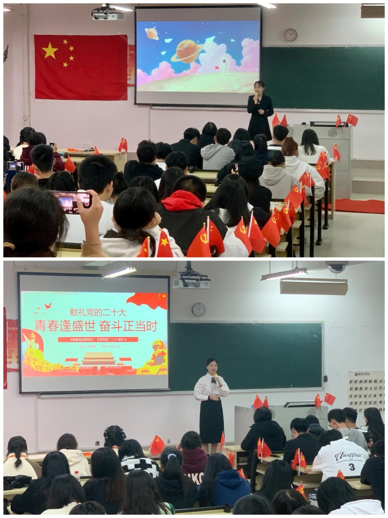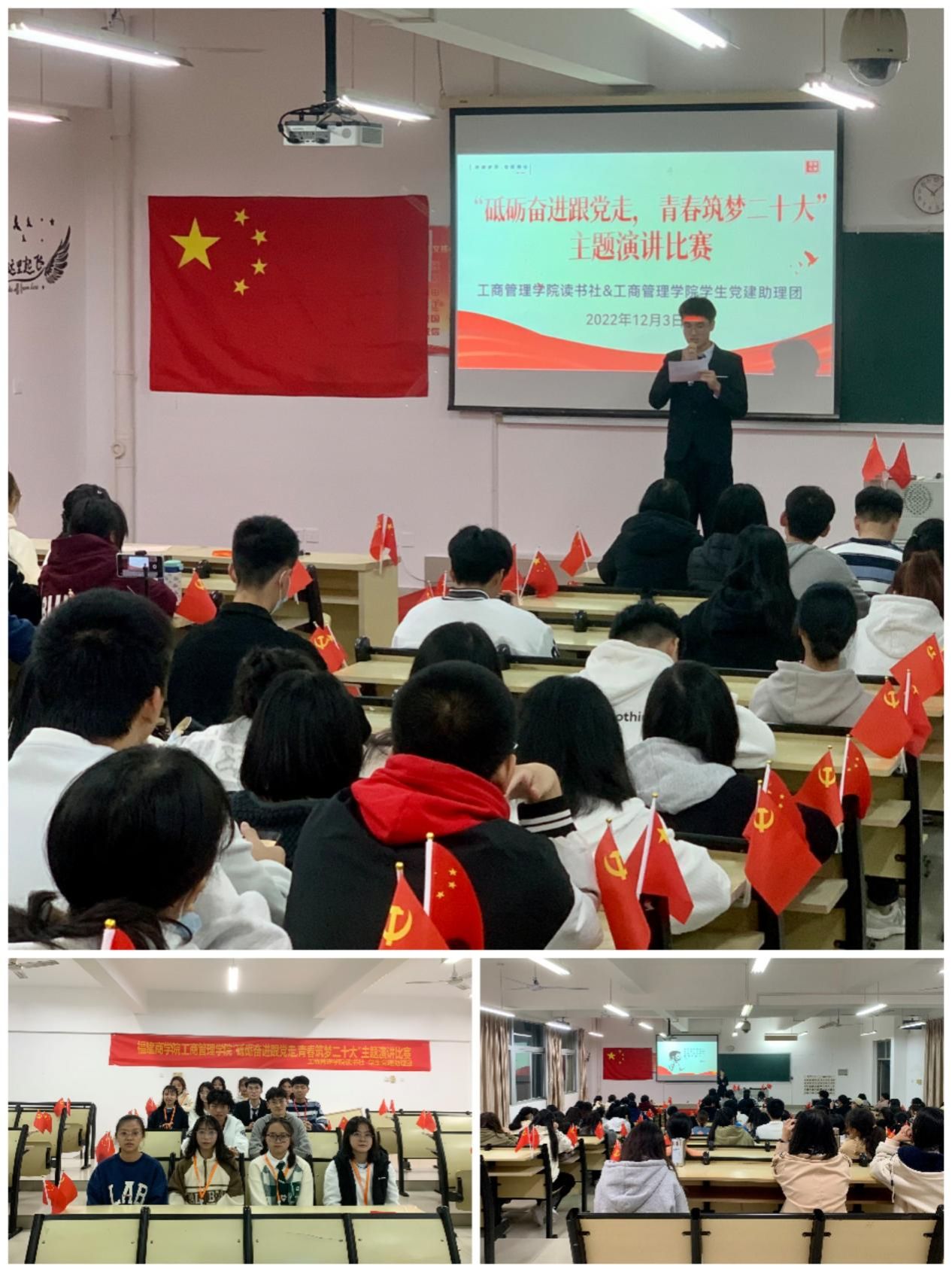 以文字抒发爱国之情,以演说表达赤子之心。本次比赛主要面向22级新生,全院其他年级同学也广泛参与。赛上选手们充分展示了自己的才能,并与台下观众倾情互动,选手们就青年、爱国、二十大等主题侃侃而谈,结合自身体会与所见所闻,以饱满的感情抒发对党的热爱。比赛过程中,时常看到观众拍照留影、做笔记,整场比赛圆满而顺利地结束。本次活动不仅丰富了同学们的校园文化生活,抒发了大家的爱党爱国之情,也给同学们提供了一个锻炼口才和展示自我的机会。大家纷纷表示,要坚定不移听党话,跟党走,立志做中国特色社会主义事业的建设者和接班人。