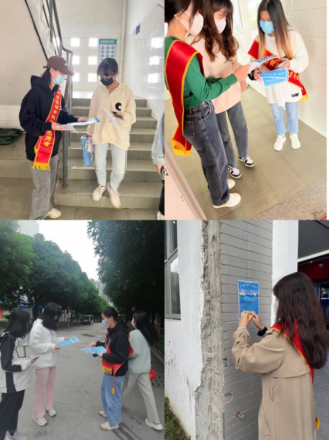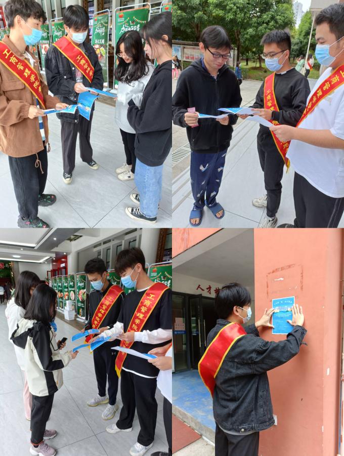 做初心使命的践行者,带头落实疫情防控措施。化身疫情防控“宣传员”,在宿舍、食堂、核酸检测现场等场所,采取口头宣传、微信宣传、海报宣传相结合的方式,及时向同学们大力宣传疫情防控相关知识和学校近期的管理政策,引导同学们戴好口罩、保持社交距离,理解并落实不点校外外卖、不配送校外外卖等规定。