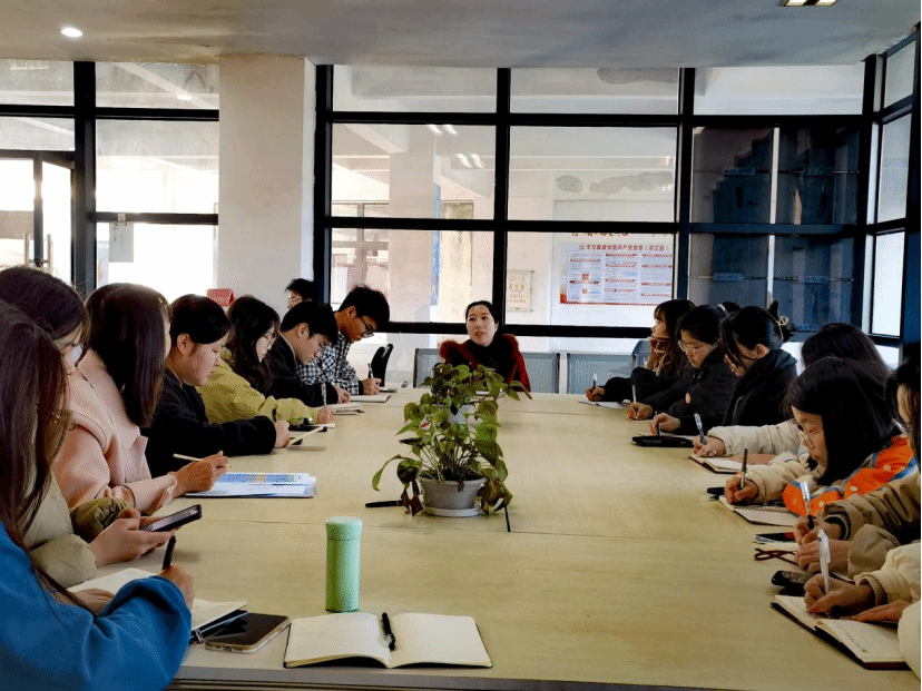 会上,陆少梅老师与在场的学生党员进行了工作交流。她肯定了学生党员在过去一年的学习工作情况以及辛勤的付出。下一阶段,学生党员要进一步发挥主观能动性,在主动担当、沟通协调、工作质量提升等方面下工夫,主动融入学院发展建设中。学生党员围绕“三会一课”、党支部立项活动等展开交流。