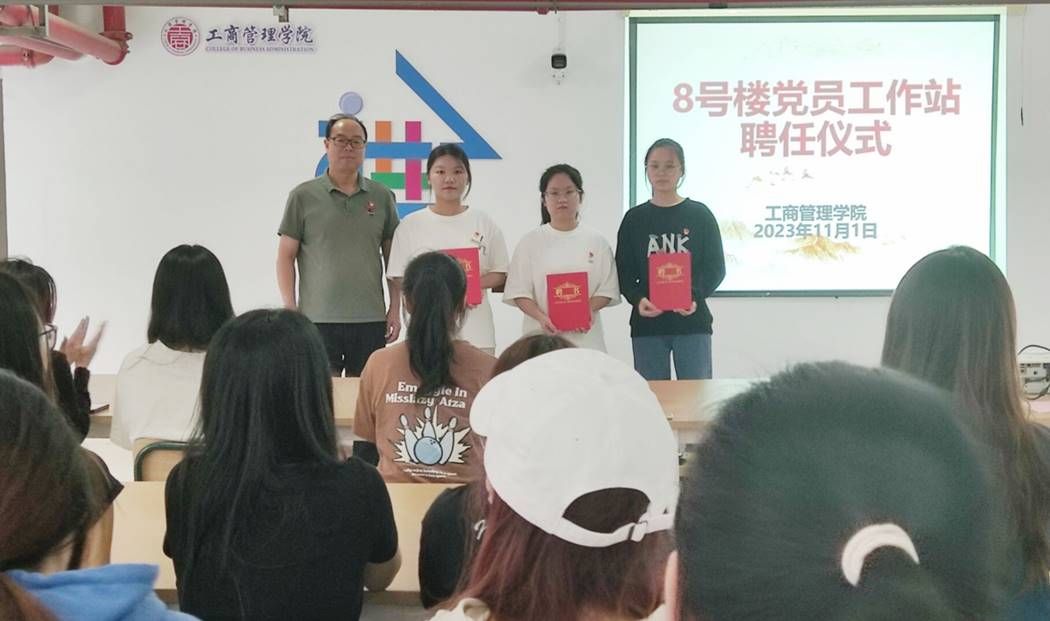 学院坚持以习近平新时代中国特色社会主义思想为指导,深入学习贯彻党的二十大精神,认真落实上级有关要求,加强党建引领,推动8号楼党员工作站工作顺利开展。陈达颖副书记(主持工作)为8号楼党员工作站指导老师朱珺玮及站长卓婉蓉、叶文玲颁发聘书。吴思锋副书记为8号楼党员工作站副站长林华环、石梅冰、黄伟婷颁发聘书。