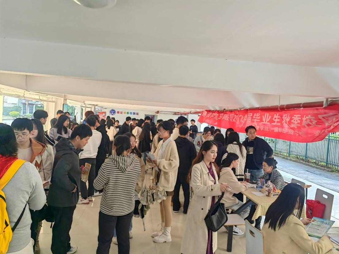 招聘会筹备阶段精准定位校区专业性质与就业发展方向,通过走访企业,了解相关企业用人需求,邀请具有针对性、专业对口的企事业单位入驻本次招聘会。针对工商管理类专业邀请中交冷链(央企)、万科、建发、金辉等老牌企业;针对国际贸易类、外国语类专业邀请鑫港水产等远洋合作企业;针对金融类专业邀请了中国人寿等经济体系内企业。