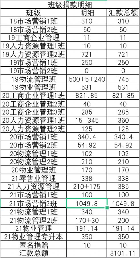 送人灯盏,手留余光,送人玫瑰,手留余香。募捐活动一经发出就得到了全院师生响应,大家纷纷伸出援助之手解囊相助,并积极参与到本次爱心募捐活动中,截至目前,共收到捐款8101.11元,募捐活动也仍在进行中。