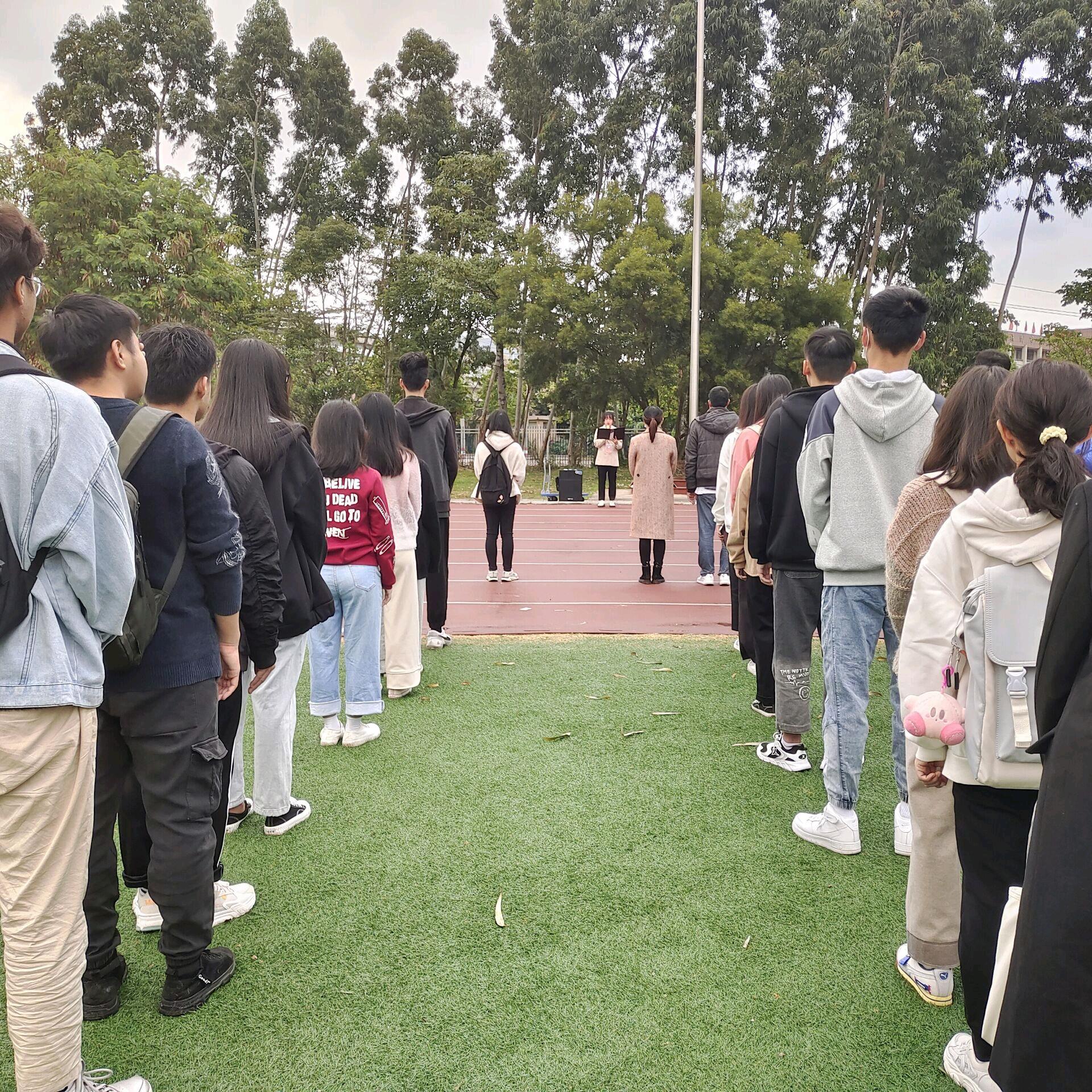 2021年正值我国建党百年,党中央召开十九届六中全会,为深入贯彻学习十九届六中全会精神,教育引导广大青年大学生深刻认识党的百年奋斗历史,加强大学生思想政治教育工作,必赢3003no1线路检测中心于2021年11月29日举行“不忘百年路,接续新时代”主题教育升旗仪式。李倩颖,冯志明老师出席此次升旗仪式,同时参与的还有必赢官网第一届学生干部代表和21级新生代表。本次升旗仪式由团委学生副书记陈洁同学发表国旗下讲话并进行主题教育。