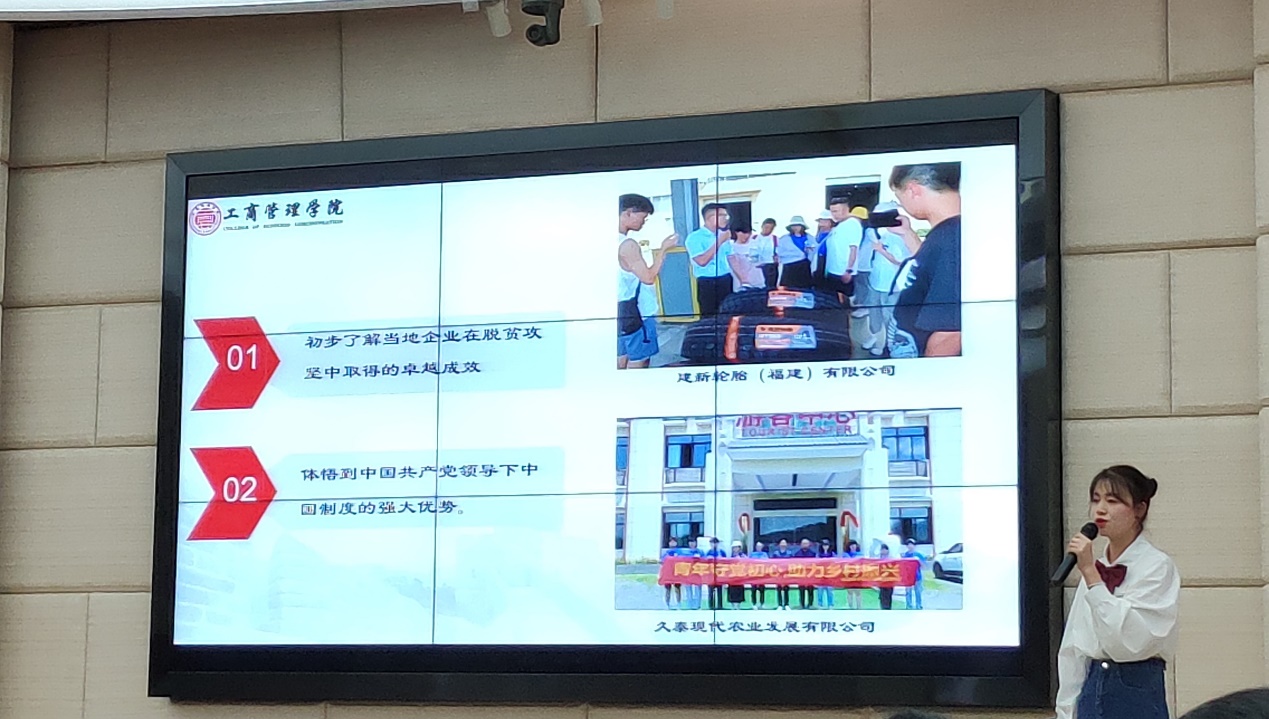 此次汇报会,主持人介绍了社会实践活动环节与内容,强调了社会实践对大学生活的重要性,并通过对“三下乡”各分队的成果报告、评委点评等,为福商学子做出模范示例,鼓励大家在大学中积极参与社会实践活动。