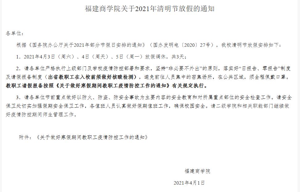 必赢3003no1线路检测中心关于2021年清明节放假的通知