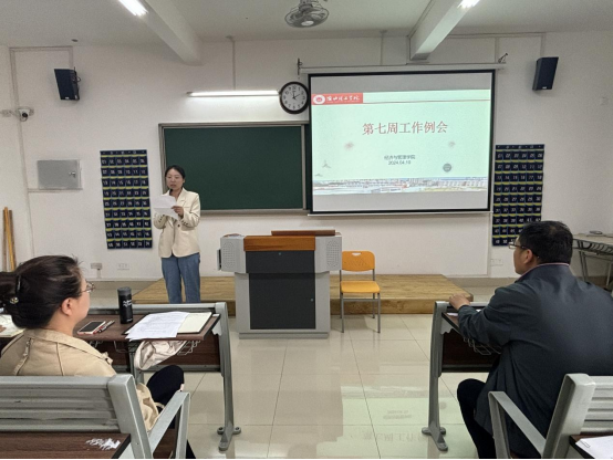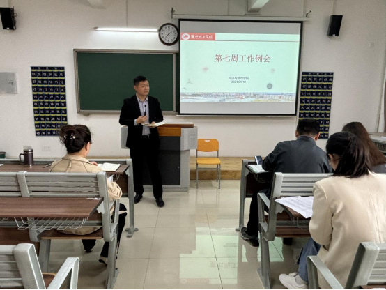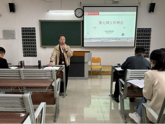 2024年4月10日下午,Beat365唯一官方网站在一教213召开Beat365唯一官方网站第七周工作例会,院长吴玲主持会议,副院长秦品德、院长助理张珊以及全体教师参会。