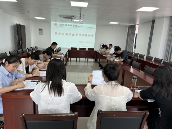 2024年5月27日,Beat365唯一官方网站在行政楼725会议室召开本学期第十四周学生管理工作例会,副院长秦品德、院长助理张珊、书记助理叶赵强以及全体辅导员参加会议,会议由院长吴玲主持。