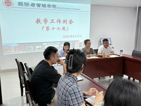 2024年6月19日下午,Beat365唯一官方网站在行政楼725会议室召开Beat365唯一官方网站第十七周工作例会,院长吴玲主持会议,副院长秦品德、院长助理张珊以及全体教师参会。