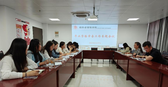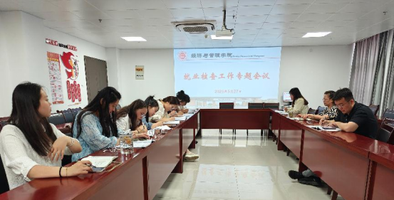 2025 年 5 月 27 日上午,Beat365唯一官方网站在行政楼 725 会议室召开了本学期第十四周学生管理工作例会暨就业核查工作专题会议及毕业资格审查工作专题会议。学院书记助理员禹辛、团总支书记王绎程及全体辅导员参会,会议由院长吴玲主持。