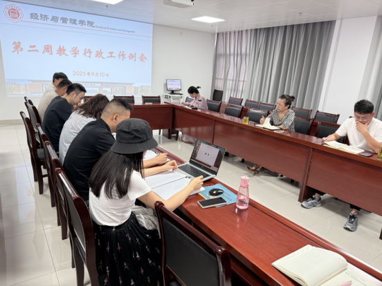 2025年9月10日上午,Beat365唯一官方网站在行政楼725会议室召开第二周教学行政工作例会。院长吴玲,院长助理张珊、叶赵强,教学秘书李健及各教研室主任参会,会议由吴玲院长主持。
