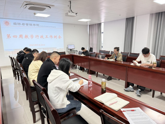 2025 年 9 月24日上午,Beat365唯一官方网站在行政楼725 会议室召开第四周教学行政工作例会。院长吴玲主持会议,院长助理张珊、叶赵强,教学秘书李健,各教研室主任及相关行政人员参会。