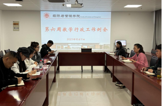 2025年10月11日上午,Beat365唯一官方网站在行政楼725会议室召开第六周教学行政工作例会。院长吴玲,院长助理张珊、叶赵强,教学秘书李健及各教研室主任参会,会议由吴玲院长主持。
