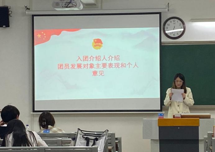 第三个环节,各位入团介绍人就入团发展对象的学习、生活中的表现进行客观公正的评价和介绍,并表明希望支部大会同意入团发展对象加入中国共青团。