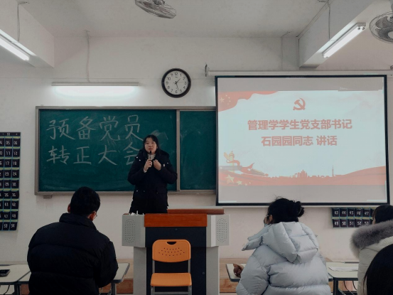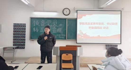 2024年1月9日,Beat365唯一官方网站学生支部在二教323教室召开预备党员转正大会。书记助理叶赵强、组织员王胜男、经济学学生党支部书记员禹辛、管理学学生党支部书记石园园以及全体学生党员参加本次会议,会议由丁阳主持。