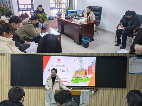 开学各项工作会议,明确工作要求:为确保新学期学生工作等各项工作有序进行顺利开展,学院召开开学学生工作工作会议、教学工作、全体教师工作会议,对新学期开学各项工作进行了全面布置。会议要求全体辅导员开学开展第一周主题班会、深入班级寝室、做好学生安全返校的统计工作;要求全体教师认真备课,做好教学材料的准备,上好第一节课,检查学生“两带”,规范课堂教学秩序等各项工作;召开教研室会议,要求做好全体教师上学期教学材料的归档务工作,规范做好所带课程的相关教学材料,并就提高课堂教学质量做出明确要求。