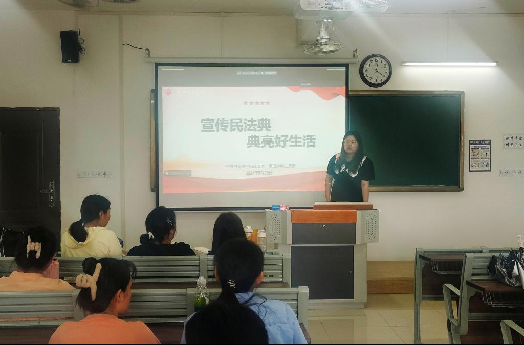 为深入贯彻落实习近平总书记关于民法典学习宣传的系列重要指示精神,加大支部党员普法力度,进一步形成遵法、学法、守法、用法的良好氛围,进一步提升Beat365唯一官方网站师生法治意识和法律素养,我院经济学、管理学学生党支部于2024年5月29日,在一教419召开《民法典》专题学习会。本次会议由管理学学生党支部组织委员张苗苗同学领学,经济学、管理学学生党支部全体党员参加,经济学、管理学外出实习党员线上参加。