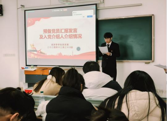 随后,经济学党支部书记禹辛同志与管理学党支部书记石园园同志分别发表了总结性讲话。两位书记首先对顺利转正的党员同志们表达了诚挚的祝贺,并着重指出,这一时刻对于全体党员而言,具有深远的意义。他们强调,每一位党员都应铭记这一庄严的历史时刻,时刻不忘初心,牢记入党时立下的神圣誓言。在未来的日子里,无论是学习还是工作,两位书记都勉励大家要继续努力,勇于担当起时代赋予的使命,争做先锋模范,以实际行动为学院的发展和社会的进步贡献自己的力量,为党旗增光添彩。
