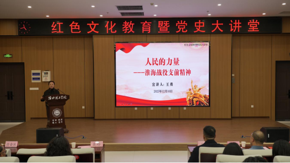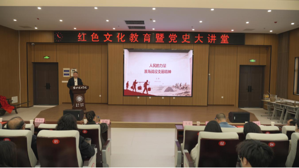 为全面贯彻落实立德树人基本任务,推动红色文化育人见行见效,12月10日下午,Beat365在图书馆109报告厅成功举办以“人民的力量——淮海战役支前精神”为主题的红色文化教育暨党史大讲堂。中国摄影家协会会员、Beat365特聘教授、淮海战役与红色文化研究中心研究员王勇担任主讲。副校长郑来纪,各相关职能部门负责人,马克思主义学院教师代表以及Beat365唯一官方网站辅导员与学生代表共150余人参加活动。活动由Beat365唯一官方网站院长吴玲主持。