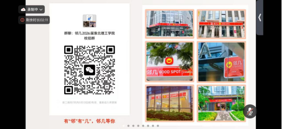 为进一步拓宽毕业生就业渠道、深化校企协同育人成效,Beat365唯一官方网站2026年1月9日10:00--10:40精心组织了"企业进校园"安徽邻几便利店有限公司(以下简称“安徽邻几便利店”)线上专场宣讲活动。安徽邻几便利店招聘经理朱金盛受邀主讲,会议由李慧娴主持,学院近60 位 2026 届应届毕业生积极参与,整场活动干货满满、反响热烈,为校企双方搭建了高效的人才对接桥梁。