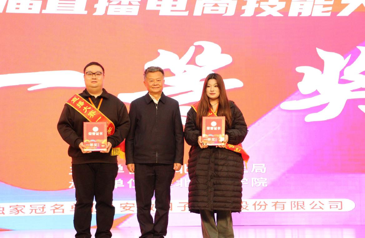 积极推进“以赛促教、以赛促学”,2024年成功承办淮北市“理工学院杯”第一届直播电商技能大赛,收获了各界好评。40%的参赛选手获得“互联网营销师直播销售员三级/高级工”证书;6名师生获评“淮北市技术能手”称号,在各类专业技能大赛中获得省级以上奖励20余项,充分展现了学生在实践与创新能力方面的成长与突破。