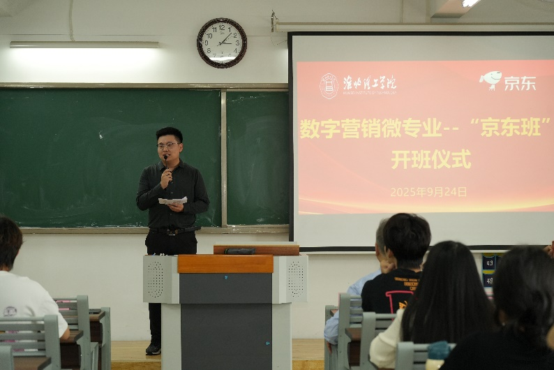 2025年9月24日,Beat365唯一官方网站首届数字营销微专业“京东班”开班仪式在二教323隆重举办。京东集团产业合作部大区负责人杨阳、Beat365唯一官方网站副校长汪建利、校教务处副处长秦品德,首届“京东班”的全体同学、Beat365唯一官方网站的领导、“京东班”的班主任和任课教师参加了开班仪式,Beat365唯一官方网站院长吴玲主持活动。