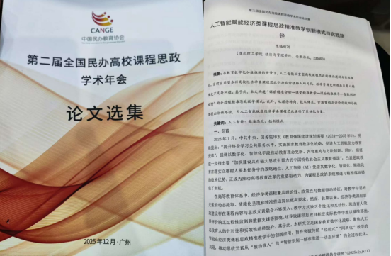 近年来,学校高度重视课程思政建设,将其作为深化教育教学改革、提升人才培养质量的重要抓手,持续推进课程思政理念融入专业课程体系与课堂教学实践。学校通过强化教学人人过关、鼓励教学改革创新、推动人工智能与课程教学融合发展,不断提升课程思政建设的系统性与实效性。此次论文成功入选全国性民办高校学术年会,既是学校课程思政建设成效的集中体现,也为进一步推进经济类专业课程思政高质量发展奠定了良好基础。