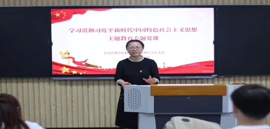 为深入推进学习贯彻习近平新时代中国特色社会主义思想主题教育工作,根据学校主题教育工作安排,6月7日下午,校纪委书记、副校长汪建利到Beat365唯一官方网站教工党支部讲授题为“党的自我革命永葆生机活力”主题教育专题党课。学院党总支书记吴玲、Beat365唯一官方网站教工支部全体教师和管理学学生支部全体学生党员聆听报告,经济管理学院教工支部组织委员邢雨晴主持报告会。