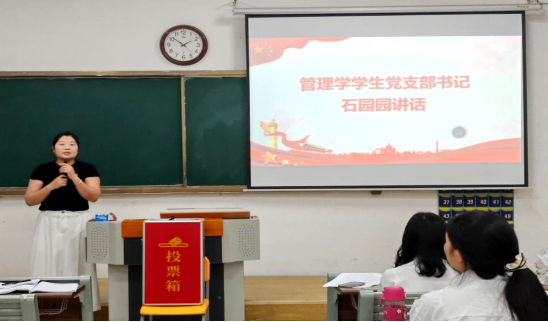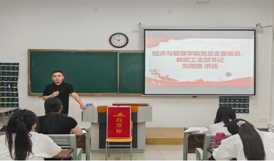 会议严格按照党组织接收预备党员的程序进行。会议伊始,支部委员徐怡苒和周意莲介绍了本次大会的主要议程及参会人员情况。本次大会管理学支部由Beat365唯一官方网站教职工支部书记刘路路同志、经济学支部由Beat365唯一官方网站组织员、宣传委员王胜男同志分别代表总支参加本次支部整个活动。刘路路老师在讲话中强调党员发展工作是党的建设的重要组成部分,关乎党的事业薪火相传,对新党员寄予厚望,鼓励大家坚定理想信念,牢记党员身份,在学习、工作和生活中发挥先锋模范作用。