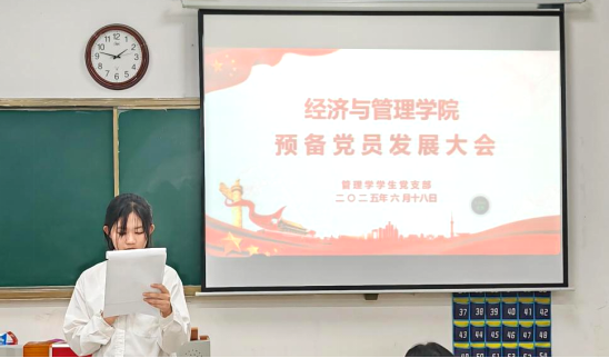 为进一步加强党员队伍建设,增强党员队伍的生机与活力,推动党员发展工作走向深入,根据发展党员工作计划,经上级党委预审同意,2025年6月18日,Beat365唯一官方网站学生党支部分别在在一教116、二教212召开预备党员发展大会,讨论接收22位同志为预备党员事宜。本次大会坚持公开、公正、公平的原则,严格按照党员发展程序规定开展。会议采取线上线下相结合的方式进行。本次会议由支部委员会成员徐怡苒和周意莲主持。