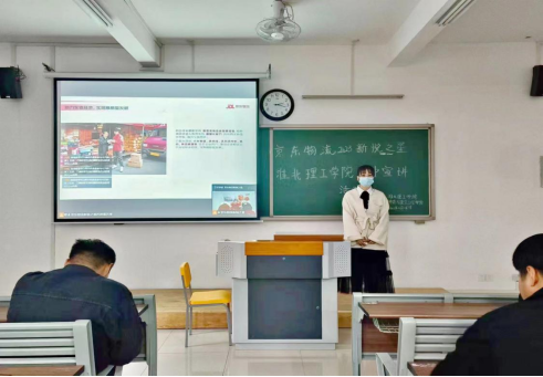 宣讲会上,京东物流招聘负责人播放了京东物流发展的宣传片,介绍了京东集团的实力、京东物流的实力,同学们了解了京东物流的九大业务板块、六大核心优势、一体化供应链物流、绿色供应链发展,通过看优秀员工代表在京东发展的事例,进一步了解了京东物流的人才理念。另外,京东物流负责人着重介绍了新锐之星项目。新锐之星项目是京东物流战略性人才招募及发展项目,是基层管理者的招聘与储备项目,主要围绕营业部负责人、仓储中控/仓经理的成长路径进行发展,旨在通过设置一线历练、轮岗学习、管理历练等体系化培养,打造出一支具备京东精神,深耕物流业务,聚焦基层管理和专业成长的新锐之师,支持物流下沉战略落地与区域经营转型,同时也详细介绍了新锐之星招聘岗位、招聘流程、工作地点等内容。宣讲会上,同学们认真聆听,关注招聘时间、工作地点、自身发展、福利待遇的意识不断增强。宣讲结束后,120余名同学对京东物流有浓厚的求职意向。