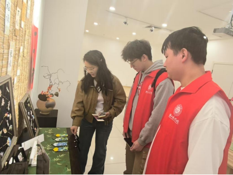 活动特别融入淮北本土非遗文化体验环节。志愿者走进新华书店三楼非遗展区,聆听工作人员讲解剪纸、扎染等传统技艺的历史渊源与工艺要点,并亲手参与剪纸创作。通过“理论+实践”的沉浸式学习,青年学子切身体会非遗艺术之美,感悟其中蕴含的工匠精神与文化力量,进一步坚定了文化自信,增强了传承意识。