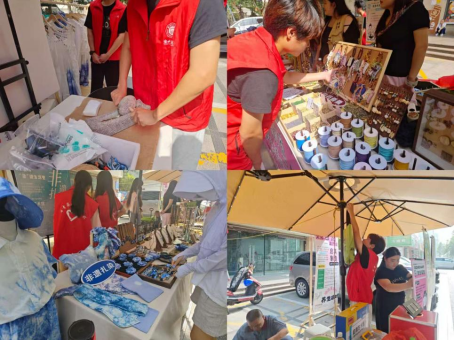 活动内容丰富多彩,形式多样,分为文创产品展示区、文化体验区及旧物焕新区三个部分。在文创产品展示区,志愿者们协助介绍和推广非遗文创产品,帮助参与者深入了解产品背后的文化内涵,并将非遗文化“带回家”;在文化体验区,扎染、掐丝珐琅等非遗技艺吸引了众多市民驻足体验,志愿者们细致讲解工艺流程,亲身示范操作步骤,引导参与者制作独具匠心的手工艺品;在旧物焕新区,志愿者们引导大家使用免费扎染服务,为旧衣物赋予全新面貌,倡导环保理念,传递绿色生活方式。