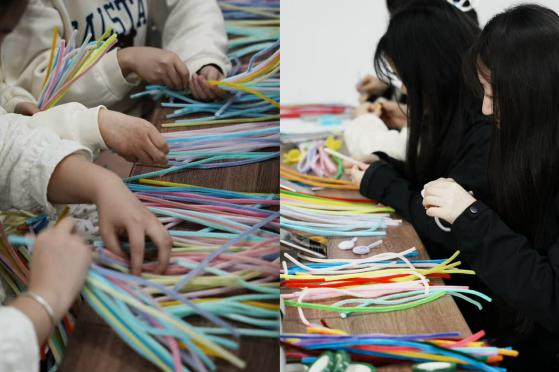 活动结束后,每个同学可以带着自己的作品合影留念,大家互相分享着自己的作品,同时诉说着自己有趣的想法。活动指导老师表示“我们希望通过非语言、非评判性的艺术表达形式,降低学生对心理问题的防御心理,让心理健康教育‘润物细无声’。扭扭棒虽小,却承载着情感的温度与成长的力量。”