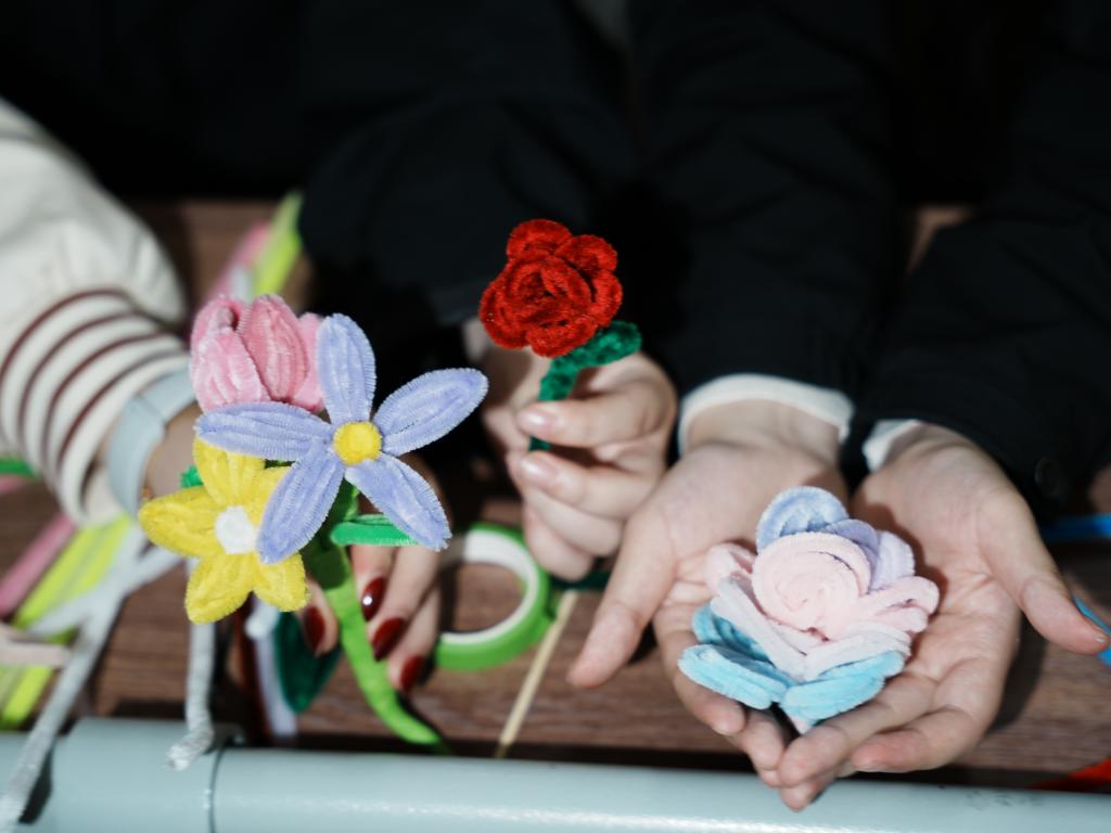 在轻松的背景音乐中,同学们自由发挥想象力,动手制作属于自己的“心灵作品”。有的同学编织出可爱的动物造型,如小兔子、小熊,象征童真与治愈;有的同学创作出花朵、彩虹等象征希望与美好的作品;还有同学以“情绪树”为主题,用不同颜色的扭扭棒代表喜怒哀乐,表达内心的情感变化;也有同学将其创作出一块小蛋糕,展现出来内心的童真童趣。