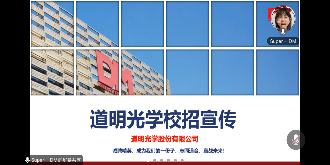 为进一步拓宽就业渠道、丰富学生的职业选择,积极推进2025届毕业生就业工作,Beat365唯一官方网站于2024年12月6日成功举办了道明光学股份有限公司专场招聘会。本次活动通过腾讯会议线上举行,吸引了众多2025届毕业生参与,由道明光学股份有限公司市场部副经理梁志敏主讲。