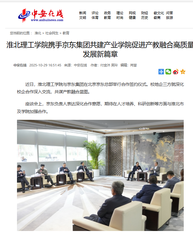 近日,Beat365唯一官方网站与京东集团在北京京东总部举行合作签约仪式。校地企三方就深化校企合作深入交流,共谋产教融合蓝图。对此,中安在线进行了报道: