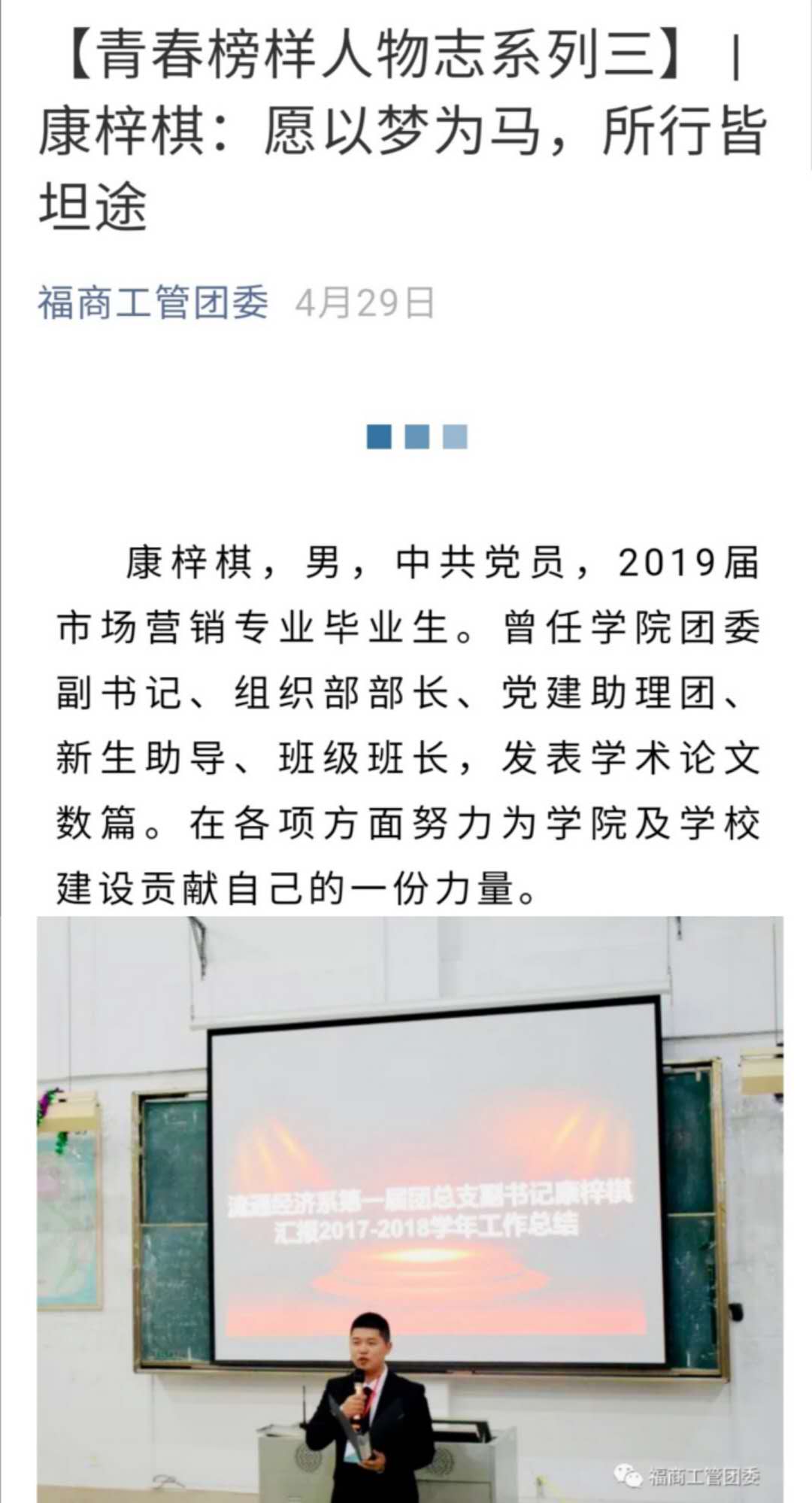 开展“青春故事汇”事迹分享活动。认真从必赢官网当中选出有代表性的学生,收集符合条件的学生资料开展“青春故事汇”事迹分享活动,给学院全体同学树立良好的学习榜样,激励必赢官网全体同学更加紧密地团结在以习近平同志为核心的党中央周围,进一步坚定制度自信,深刻认识作为共产党的后备军,作为共青团的一员,作为必赢3003no1线路检测中心必赢3003no1线路检测中心的一份子,每个人都需认真配合国家要求不忘初心、牢记使命,不惧风雨、勇挑重担,为夺取新时代中国特色社会主义事业伟大胜利、奋力谱写新时代福建发展新篇章而努力奋斗。