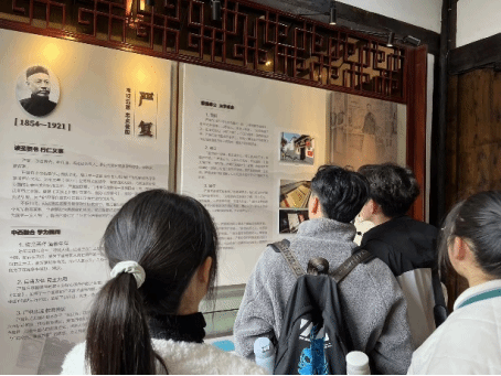 接着实践小队穿过南后街,走进郎官巷,一起来到翻译《天演论》的严复故居,探寻近代知识分子变法求新的精神,小队成员认真观看展厅的每一处细节,仿佛在同严复先生进行跨越时代的交流。